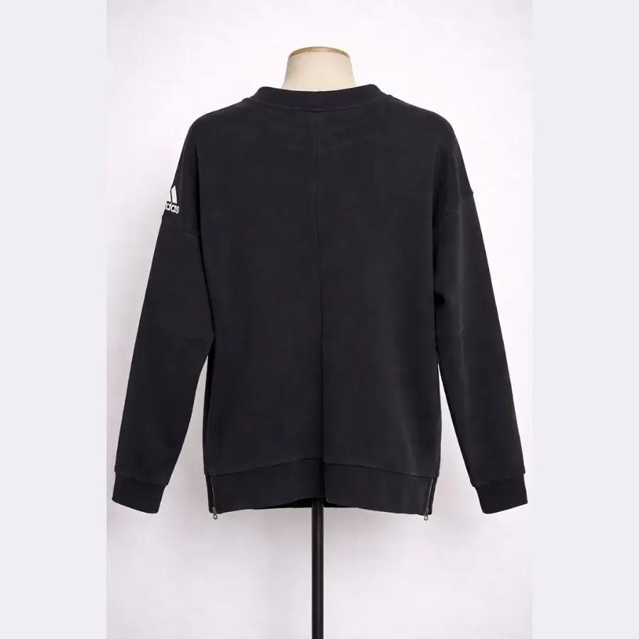 ADIDAS Baggy Sweatshirt for Men is a black sweatshirt with a comfy fit. It has a classic black color that matches easily. It feels loose and very comfortable to wear. It has the ADIDAS logo on the sleeve. It is made from soft cotton-blend fabric. It has ribbed cuffs and hem for shape. It is original and used but clean.