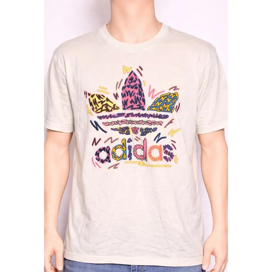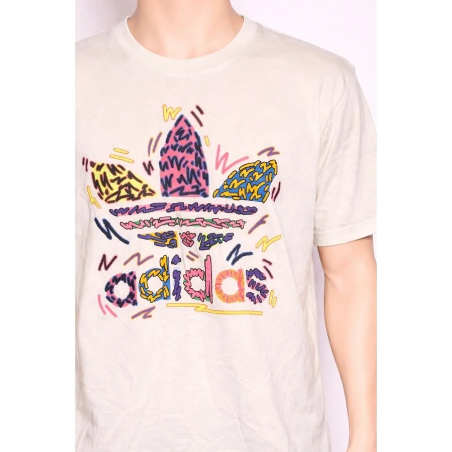This Adidas men’s t-shirt stands out with a vibrant, artistic take on the iconic Trefoil logo. Set on a neutral beige base, the colorful graphic design adds a playful and modern streetwear feel. Made from soft, breathable fabric, it offers all-day comfort while making a bold style statement.