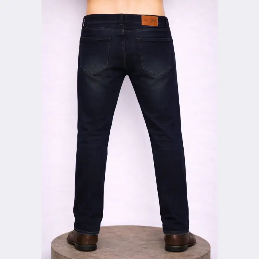 ARMANI Black Slim Fit Jeans Pant is black and stylish. It is good for casual and semi-formal wear. It is made from stretch denim for comfort. It has a slim fit and looks modern. It has ARMANI logo details. It is original, used but clean. It has a waist size of 36 inches.