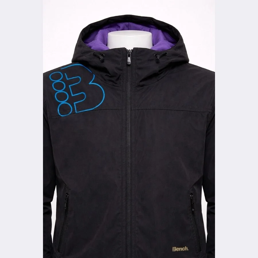 This black Bench jacket has a clean, urban look for everyday wear. It has a stylish purple inner lining that adds a unique touch. It comes with a comfortable hood and a full zip for daily use. It is light and easy to wear for travel.  It has original brand quality and clean condition. It is a perfect streetwear piece that layers easily in mild weather.