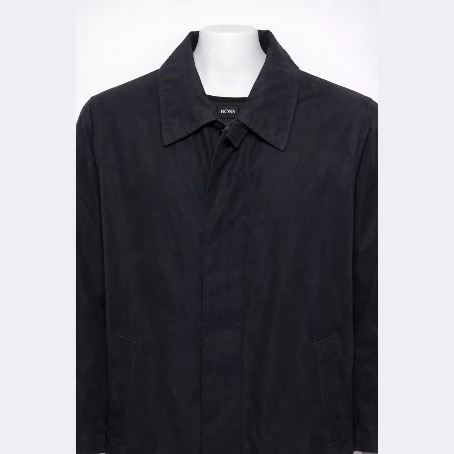 This black BOSS jacket has a clean, sharp look for formal wear. It Has a structured shape and a neat collar for a professional style. The minimalist design makes it very easy to layer over shirts . It is an original item, kept very neat and clean. A timeless piece that offers signature BOSS quality and elegance. It is perfect for formal events or smart daily use.