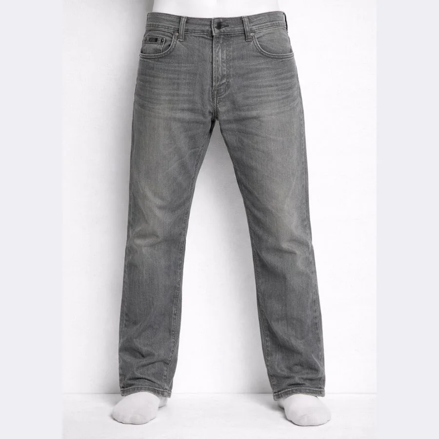 BOSS Men’s Grey Jeans is grey and stylish. It has a regular fit and looks neat. It is comfortable to wear all day. It is good for work or casual outings. It goes well with shirts, sweaters, or jackets. It is original, used but clean. It is made from soft, good-quality fabric.