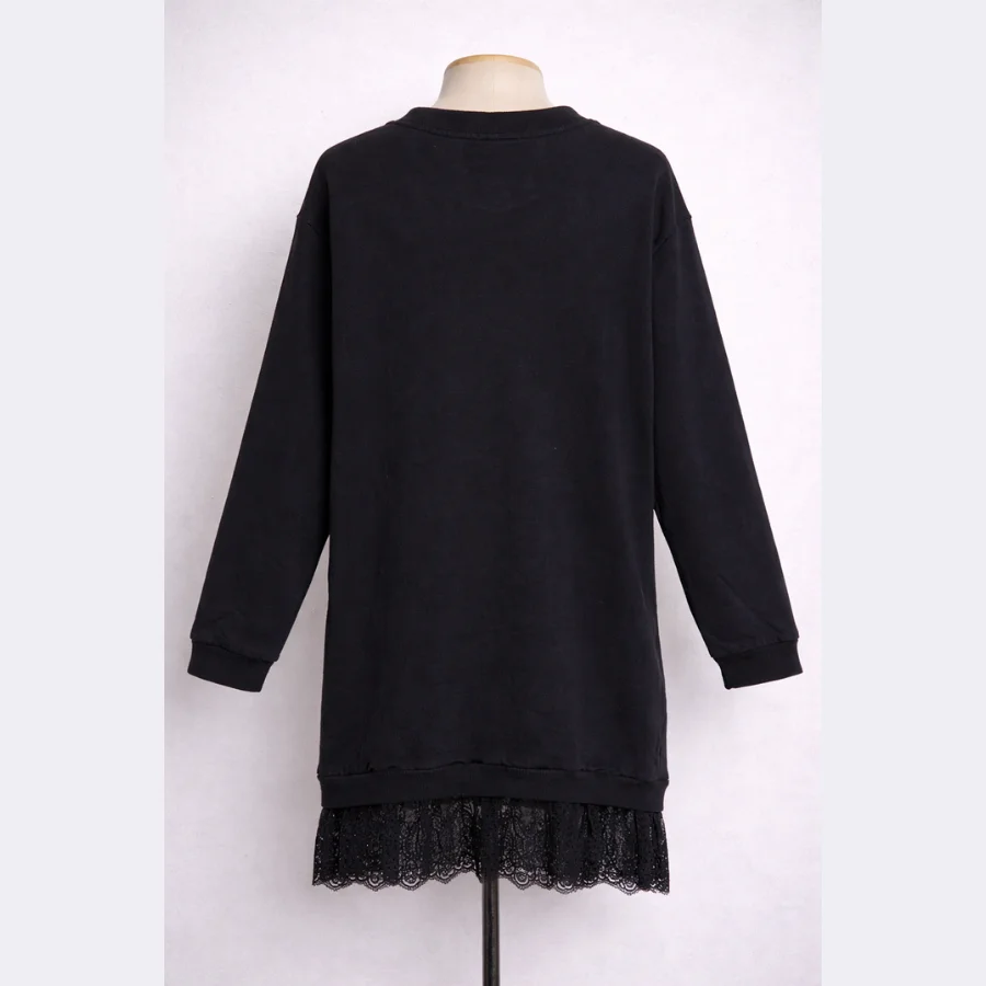 The BOY LONDON Women’s Sweatshirt in size Large offers a blend of casual comfort and iconic street style. This classic black sweatshirt features the BOY LONDON logo prominently on the front, accompanied by a unique lace hem at the bottom, creating a modern and edgy twist on a traditional design. The soft cotton blend fabric ensures a comfortable fit while providing warmth for cooler days, making it perfect for layering or wearing on its own. The regular fit allows for unrestricted movement, providing you with the freedom to move through your day in comfort and style.