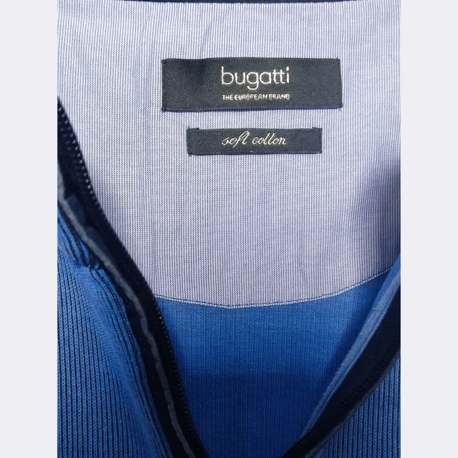 BUGATTI Half Zip Troyer for Men in blue, size XL. It has a fresh blue color that looks clean and stylish. It is made from a soft cotton. It has a half-zip design for easy wear. It includes a front zip pocket for small items. It has a regular fit and feels comfortable. It is original and used but clean.