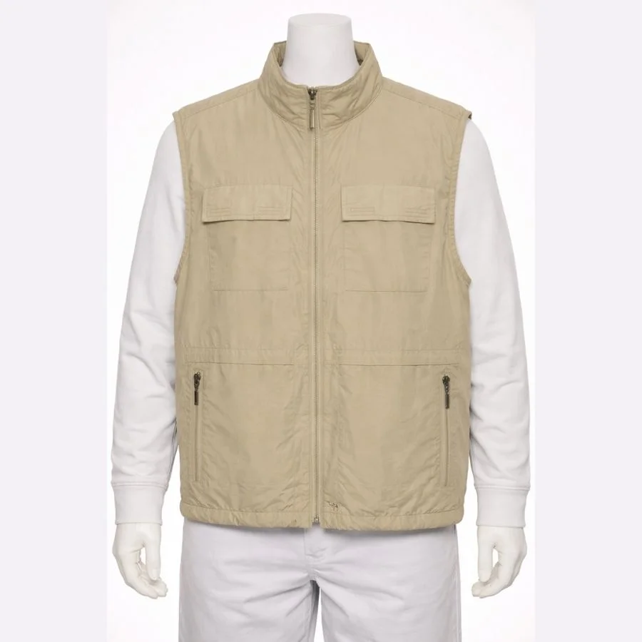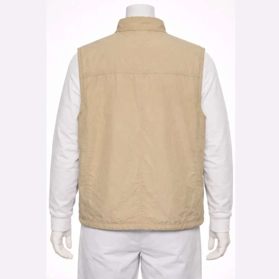 This Camel Collection sleeveless vest features a functional and practical design in a neutral beige tone.
