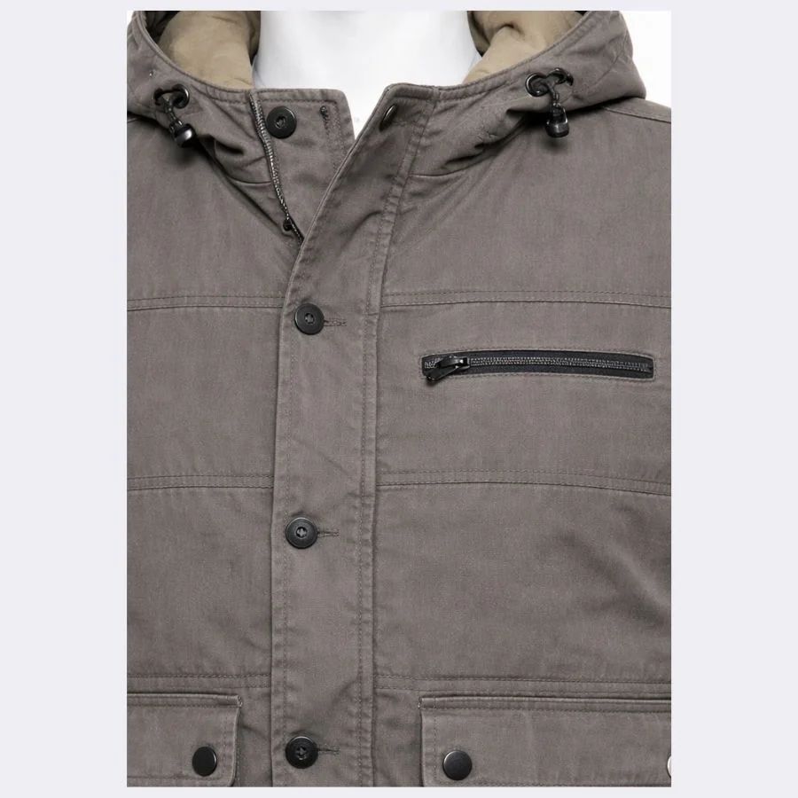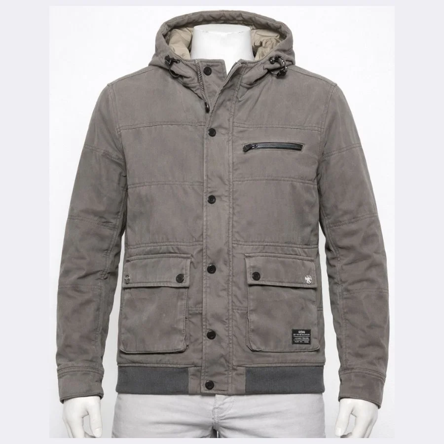 This grey jacket is made for daily comfort and winter protection. The fabric is strong and the hood keeps you warm. It has many pockets for your daily things. It is genuine item is clean and ready to wear. The grey color is clean and matches everything. It is a solid and reliable choice for the cold.