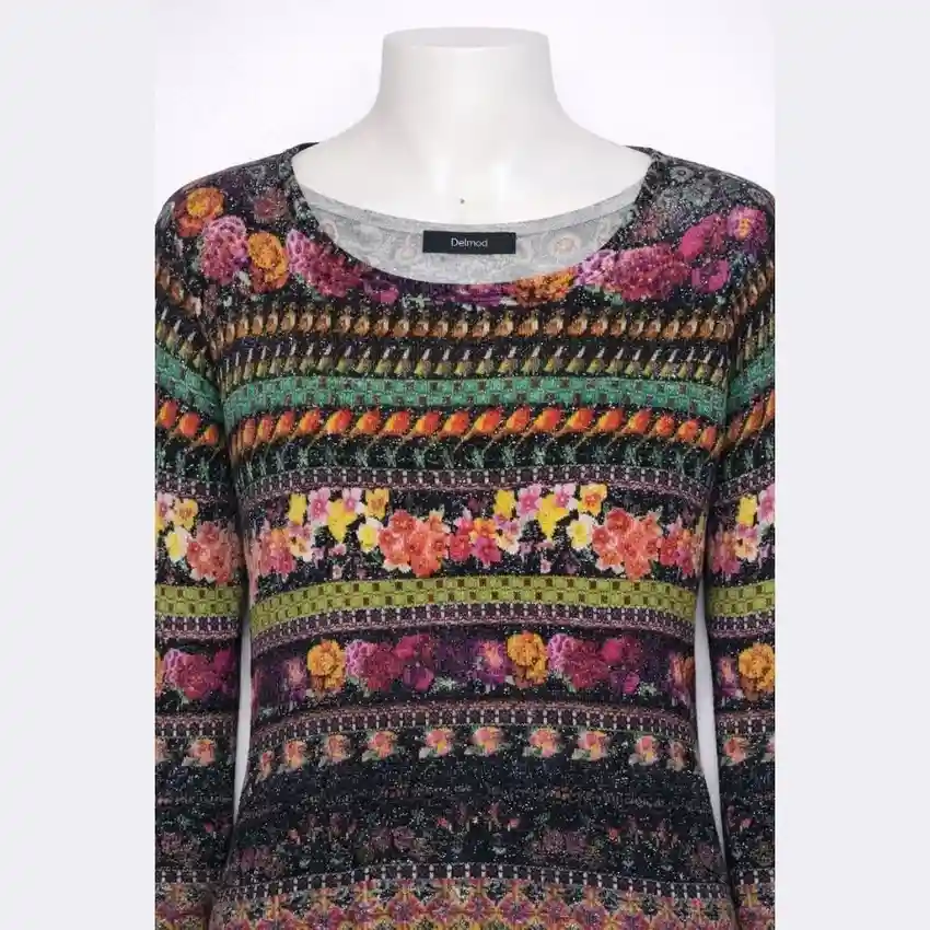 This DESIGUAL women printed sweater is bright and stylish. This sweater is in medium size. It has a colorful printed design that gives a fresh and unique look. The soft fabric feels comfortable and easy to wear.