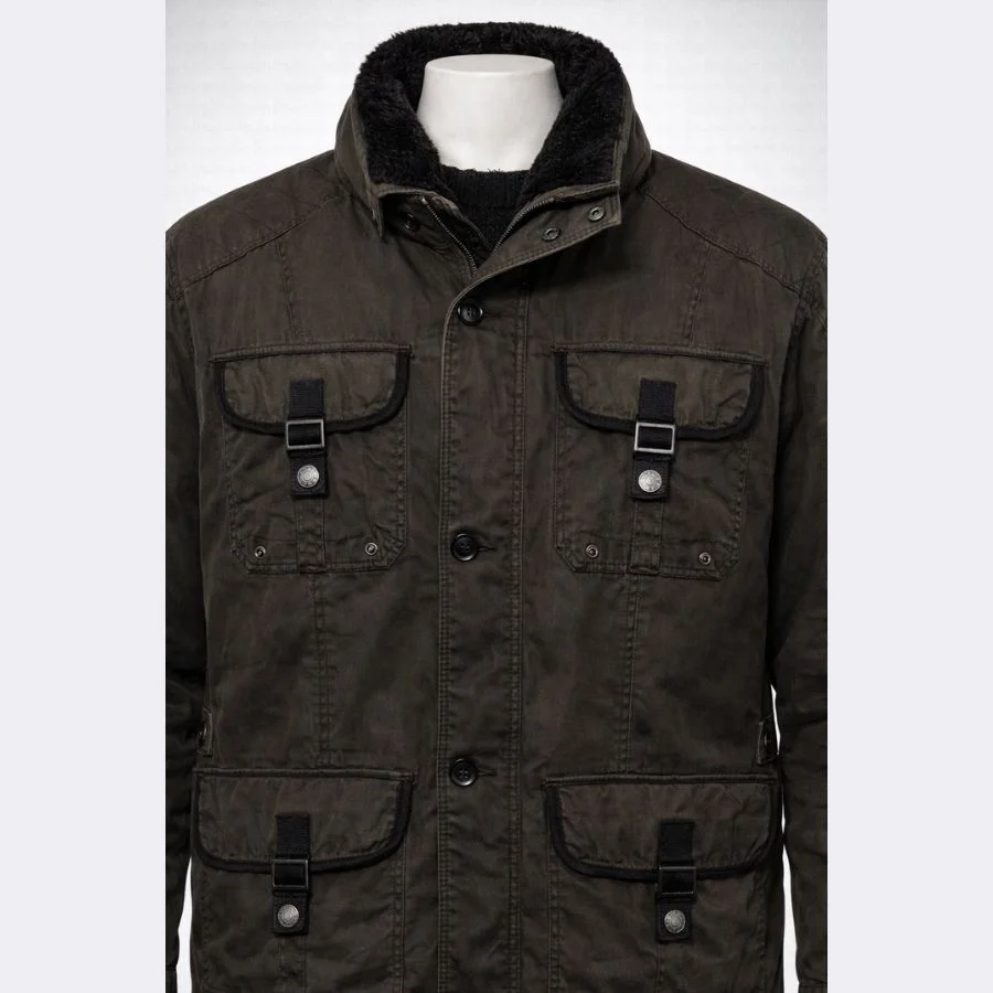 This olive-brown jacket is made for daily use and a strong, practical look. It features a tough look and useful front pockets. The structured shape gives it a clean . It is a well-maintained original item that still looks very tidy. A solid and comfortable choice for daily activities or travel. The collar has a soft lining to keep you extra warm in cooler weather.