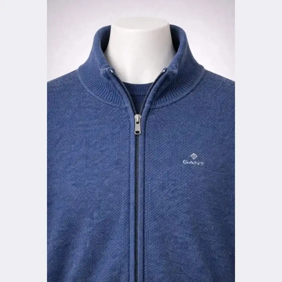 GANT Men’s Full Zip Sweater comes in classic blue. It gives a clean and timeless look. It has a full zip for easy wear. It features a neat fine knit texture. It includes a small GANT logo on the chest. It is made from soft and lightweight fabric. It is original and used but clean.