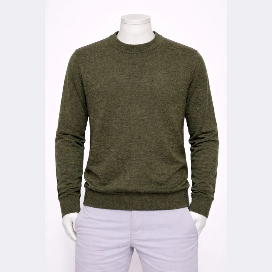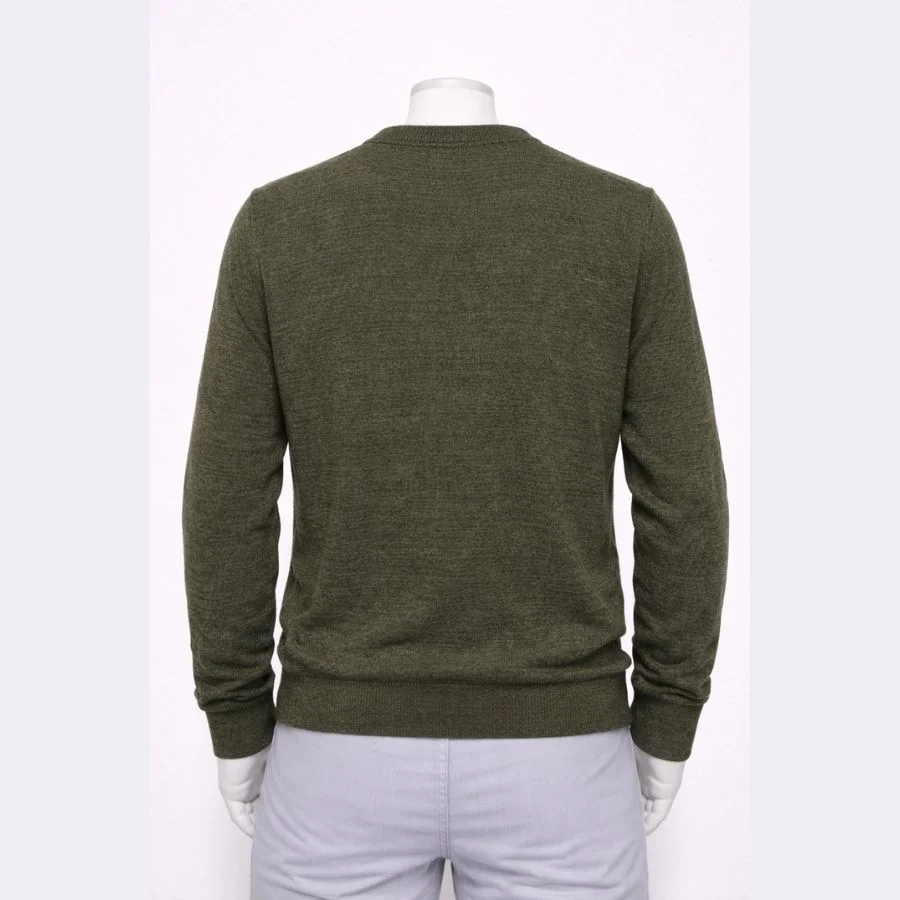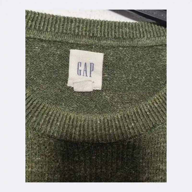 GAP Men’s Crew Neck Sweater comes in olive green melange. It has a clean and minimal look. It features a classic crew neck design. It is made from soft knit fabric. It feels comfortable for daily wear. It is easy to wear alone or for layering. It is original and used but clean.