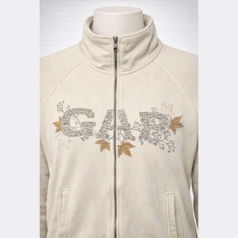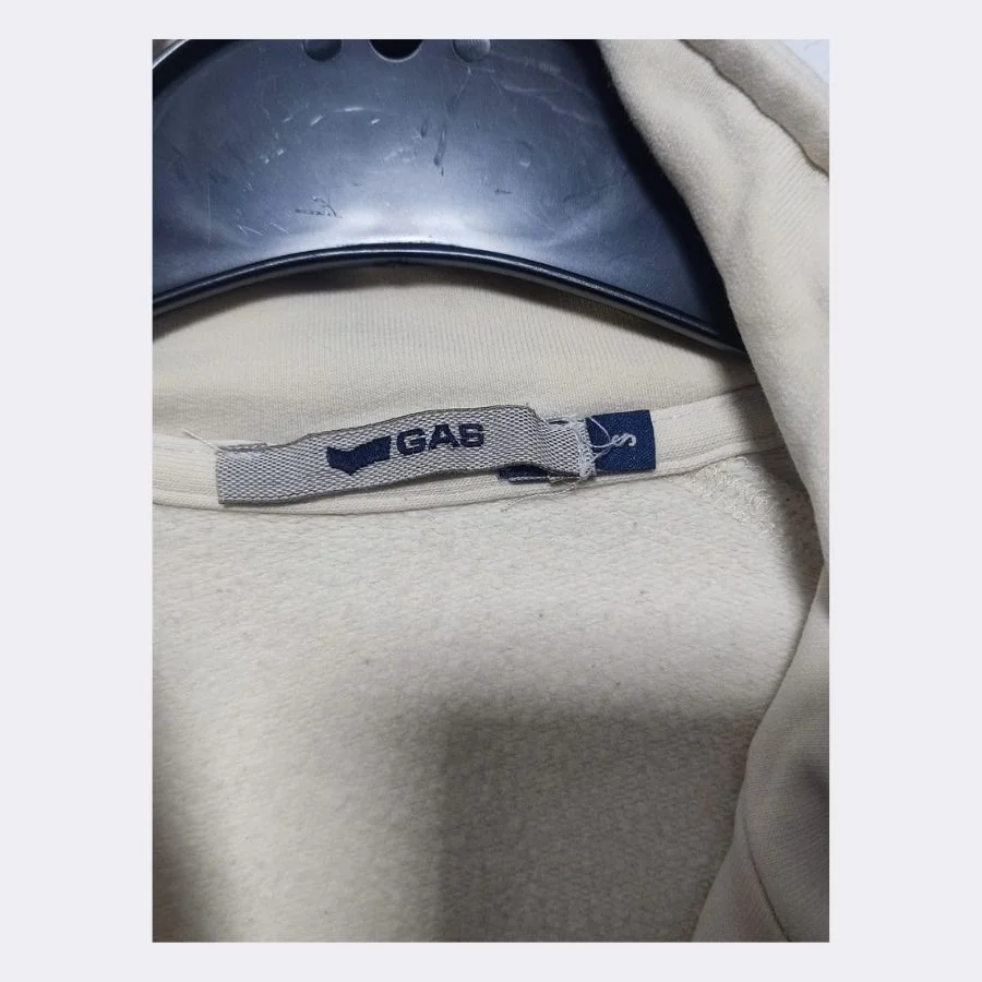 This is a GAS women’s light zip jacket in size small. It has a light beige color. The logo on the front looks clean and simple. The zip opens fully for easy wear. Great choice for everyday use and relaxed outfits.