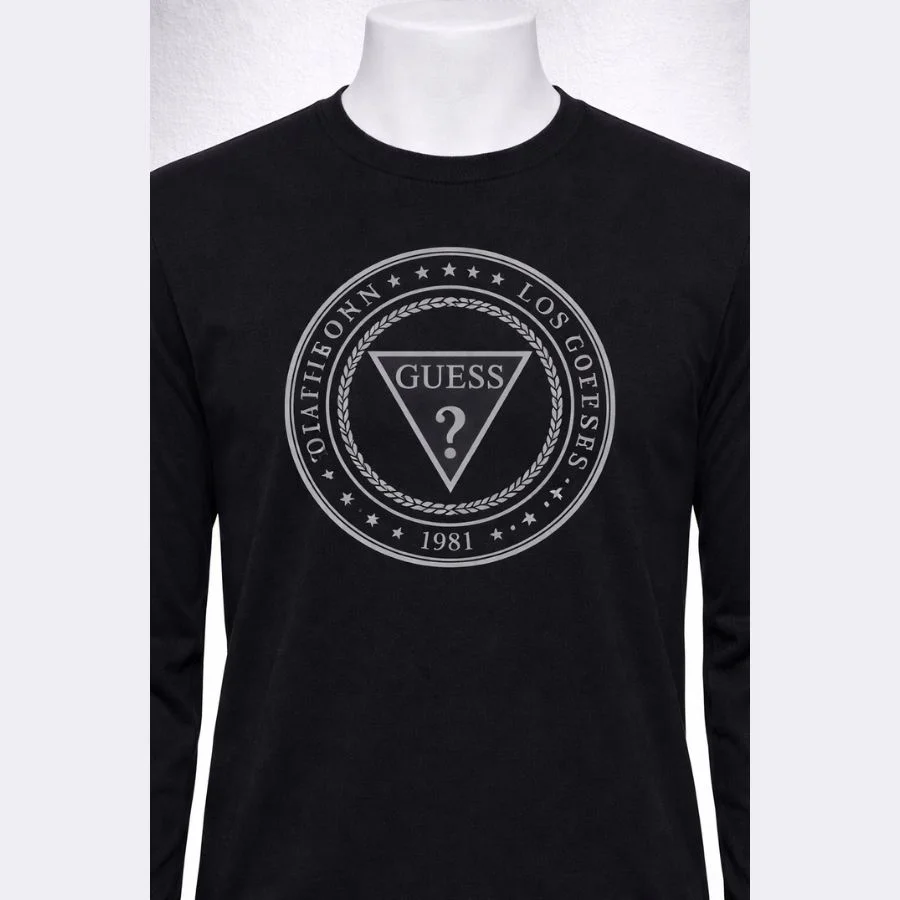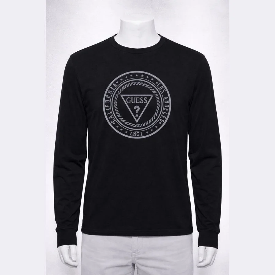 This is a GUESS men’s long sleeve T-shirt. It is of a medium size. It comes in a classic black color. The front logo gives a modern look. The fabric feels light and comfortable. Good for daily wear and casual outfits.