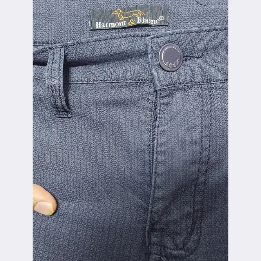 HARMONT BLAINE Slim Fit Jeans are dark blue jeans. It has a rich dark blue color. It has a slim and modern fit. It is made from strong and comfy fabric. It has five pockets for daily use. It is original and used but clean.