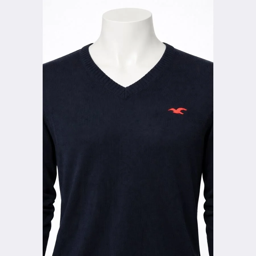 This is a HOLLISTER men’s V-neck sweater in XL size. It comes in a classic black color. The knit fabric feels soft and comfortable. A small logo is on the chest. Good for daily wear and casual outfits.