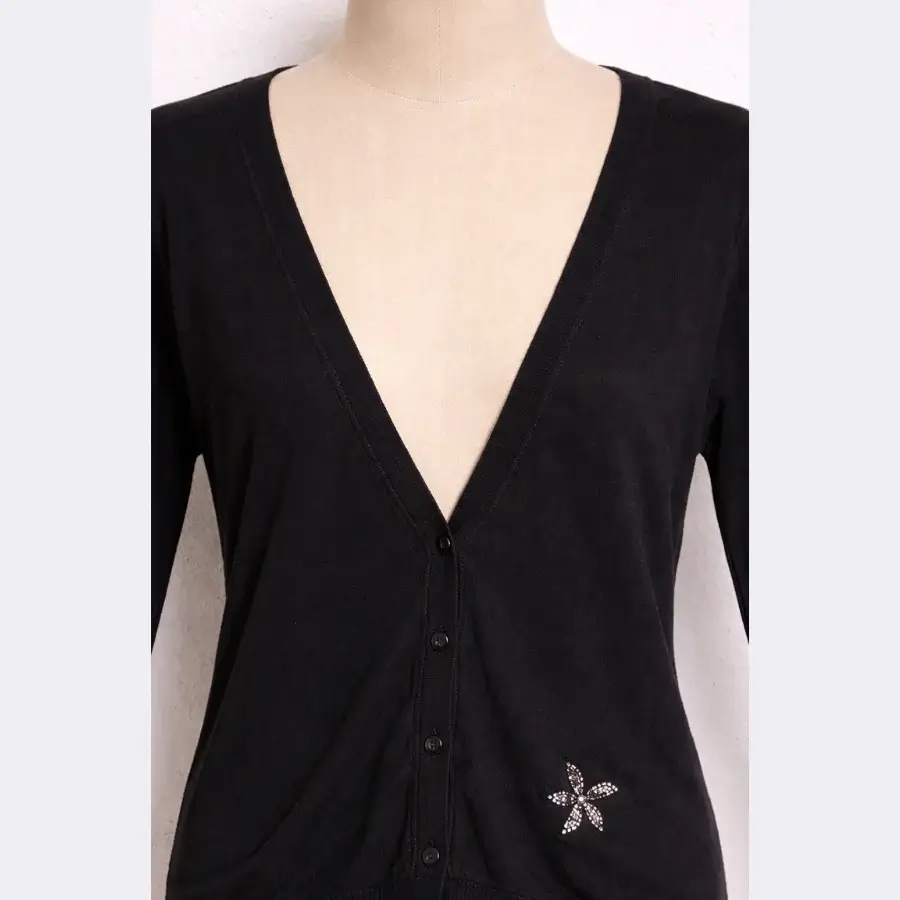 This is a LIU JO full sleeve sweatshirt in XS size. It comes in a classic black color. The buttons close at the front. It has front pockets for comfort. It is good for casual wear and relaxed days.