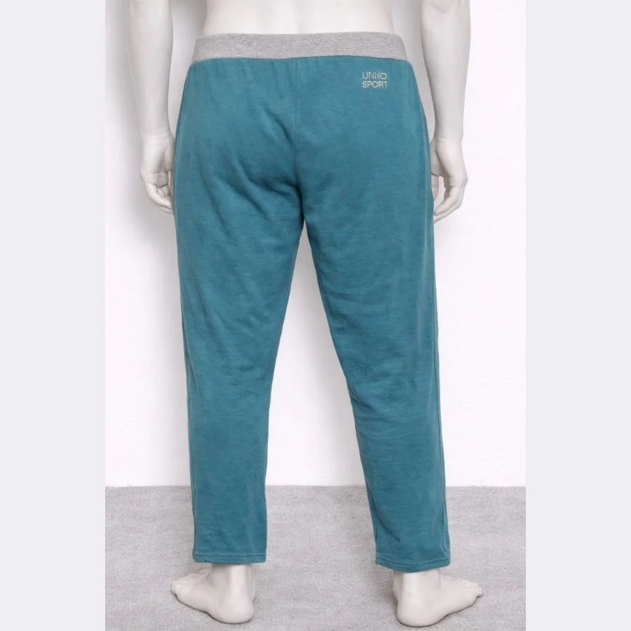 These LIU JO Men’s Casual Trousers are teal blue pants with a clean look. It has a gray elastic waist that looks nice. It has side pockets for small things. It has a string waist for a comfy fit. It fits loose and is easy to wear at home or outside. It is original and used but clean. It looks good with t-shirts.