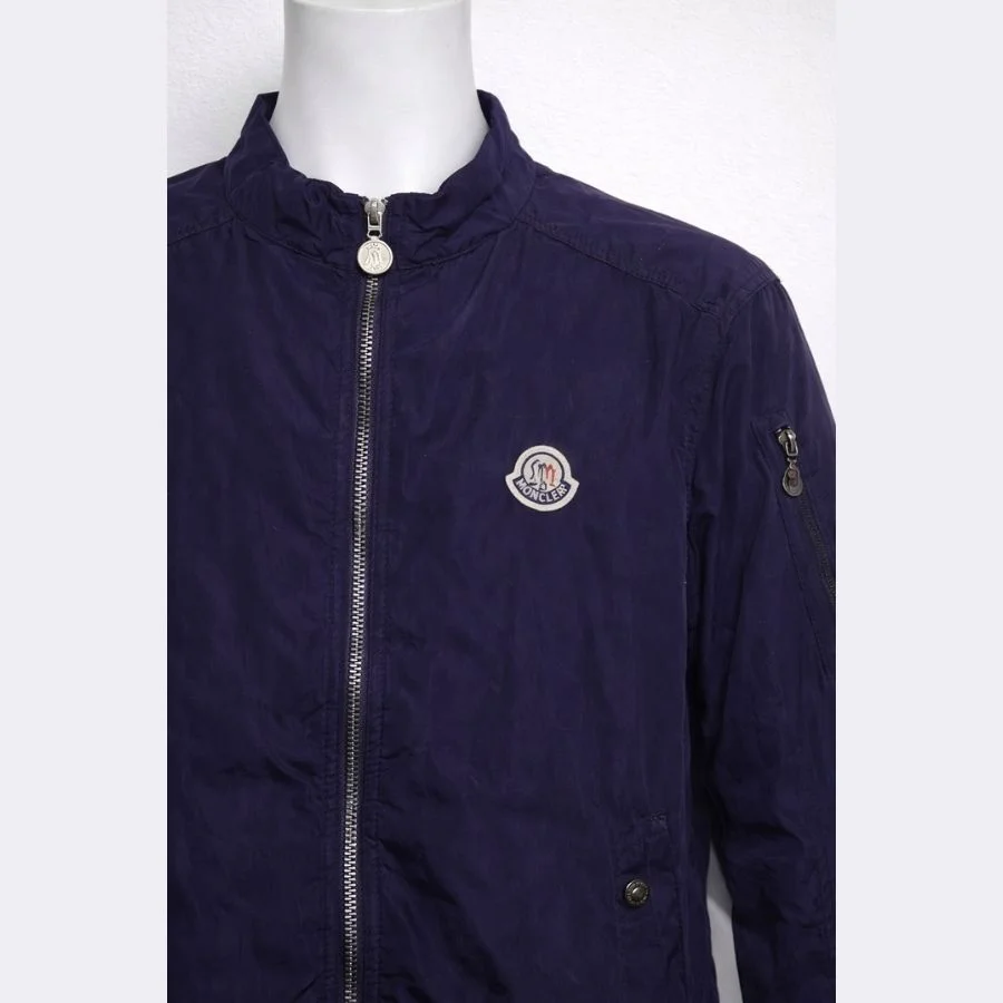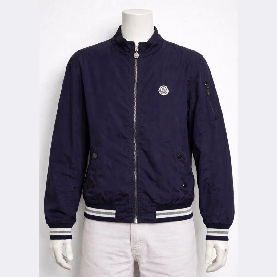 This MONCLER men’s jacket is comfortable and stylish. It is dark blue and has a simple design. The cuffs and bottom fit well. The MONCLER logo on the chest looks nice. You can wear it for daily use travel or smart casual outfits. It looks good with jeans or casual pants