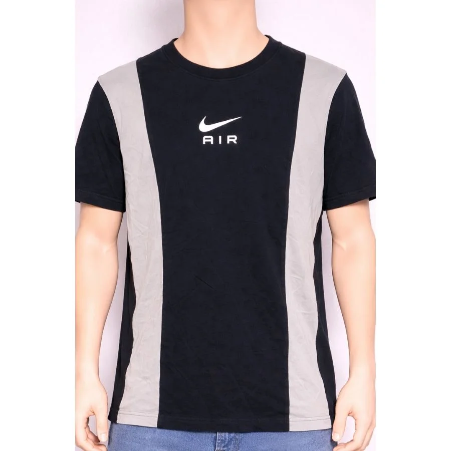 This Nike Air men’s t-shirt features a black base with grey side panels and a bold front logo, giving a sporty and modern look. Made from soft, breathable fabric, it offers good comfort for everyday wear. A stylish piece that pairs easily with jeans, shorts, or activewear.
