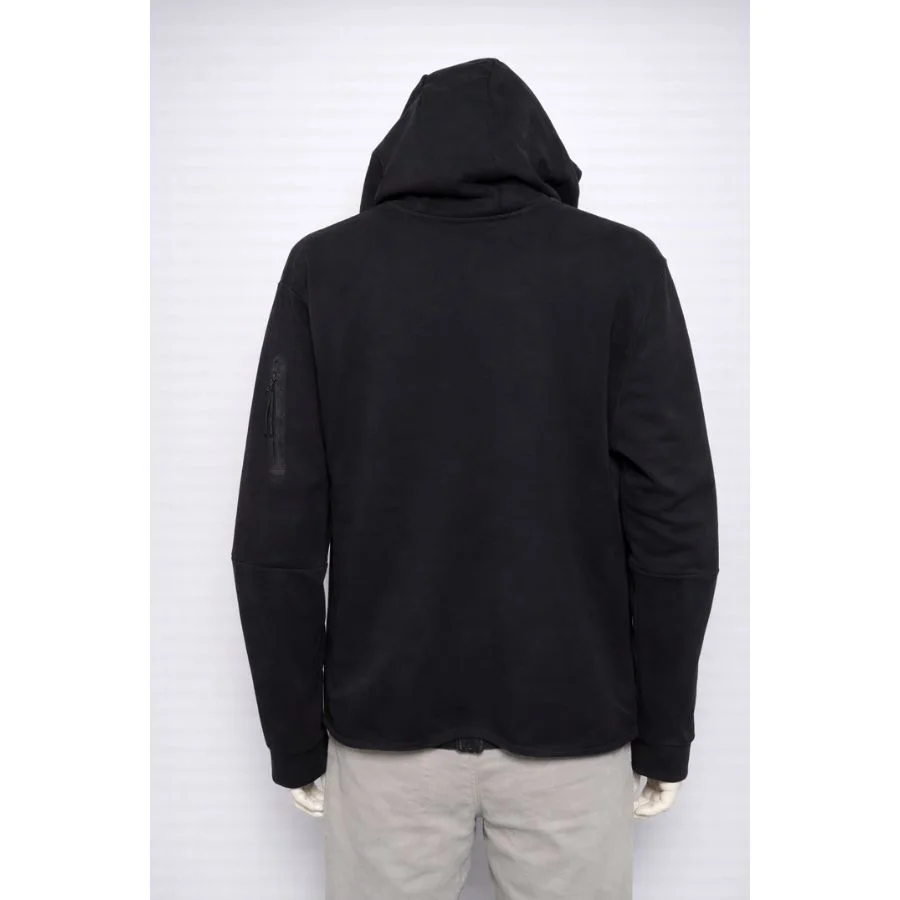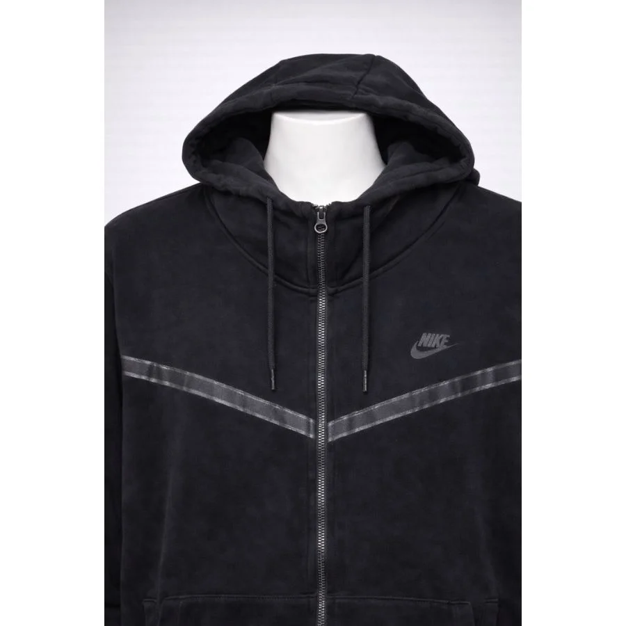 This NIKE Black Hoodie for Men is a black hoodie with a sporty and modern look. It is made from soft fabric that keeps you warm every day. It has a full zip and a hood for easy use. It has side pockets to keep hands warm. It is light and comfy, good for gym or casual wear. It is original and used but clean, with strong black color.