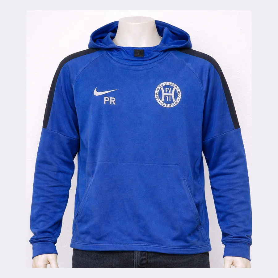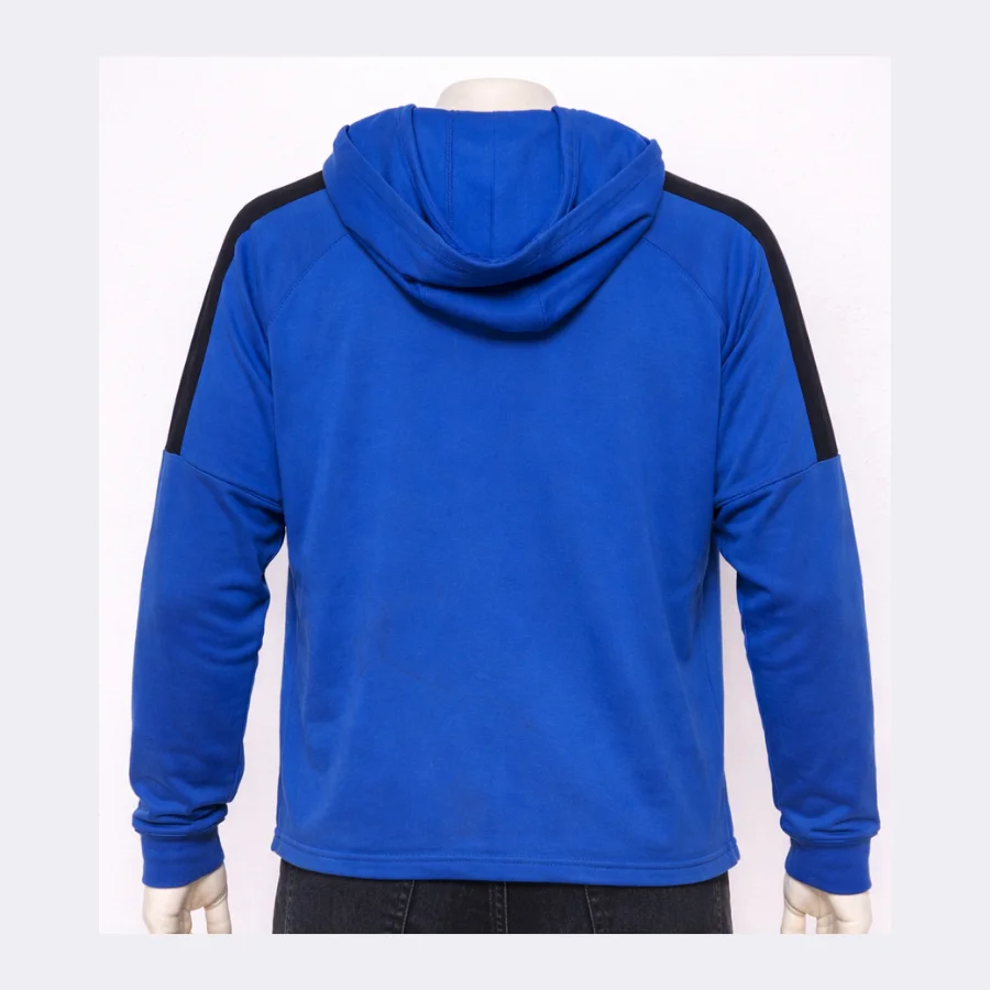 This NIKE hoodie is comfy and good for sports or daily wear. The special Dri-FIT fabric keeps sweat away and you stay dry. Blue color looks bright and the hood keeps you warm. Nike logo on the chest makes it look sporty. Loose fit gives you plenty of space to move. Perfect for gym, sports or just relaxing at home.
