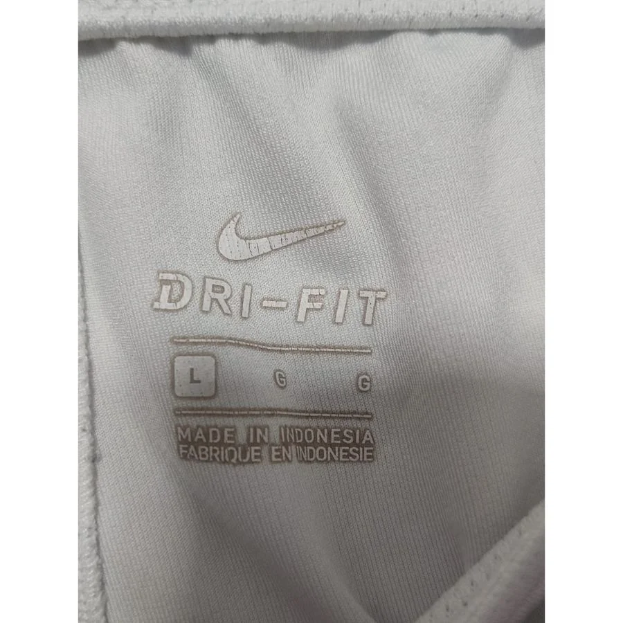 These are Nike men’s shorts in large size. They come in a light grey color with dark side panels. The Nike logo is on the front. There is also a badge detail on the leg. They have an elastic waistband with drawstrings. The material feels smooth and breathable. They are perfect for sports, training, or daily wear.