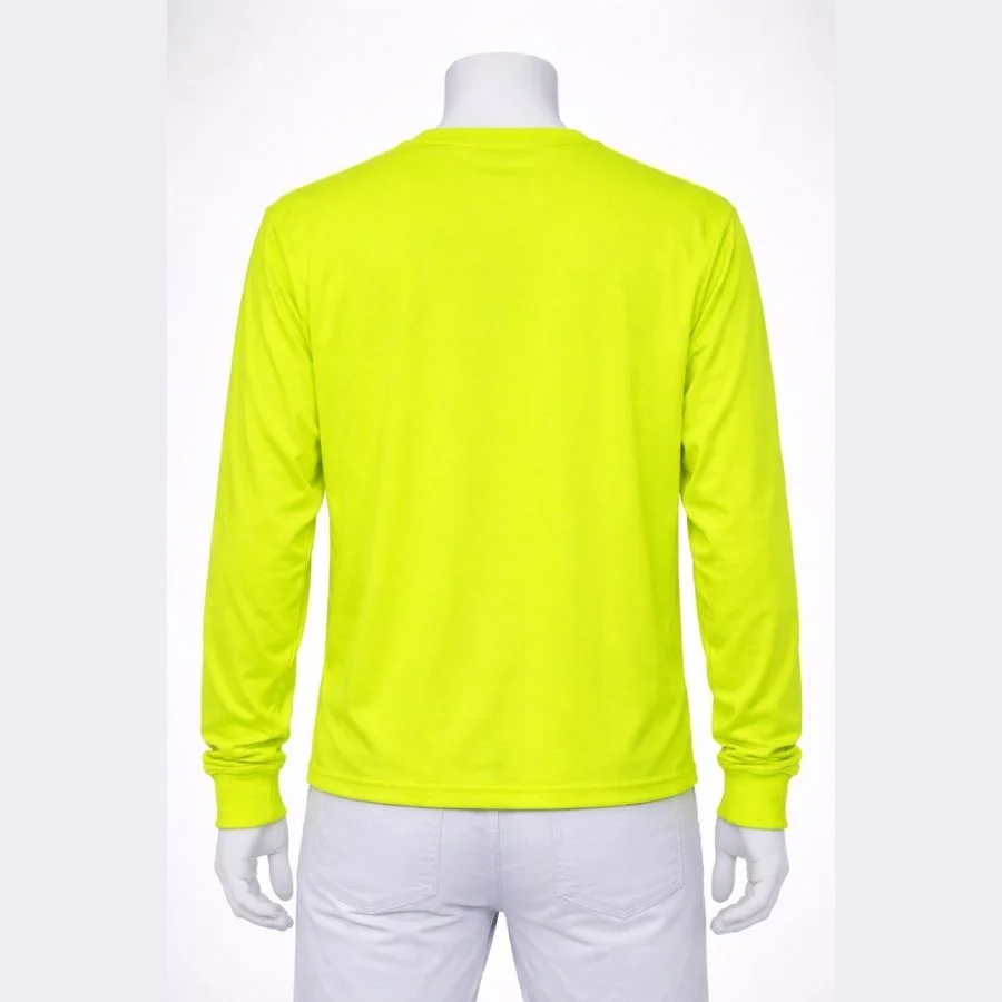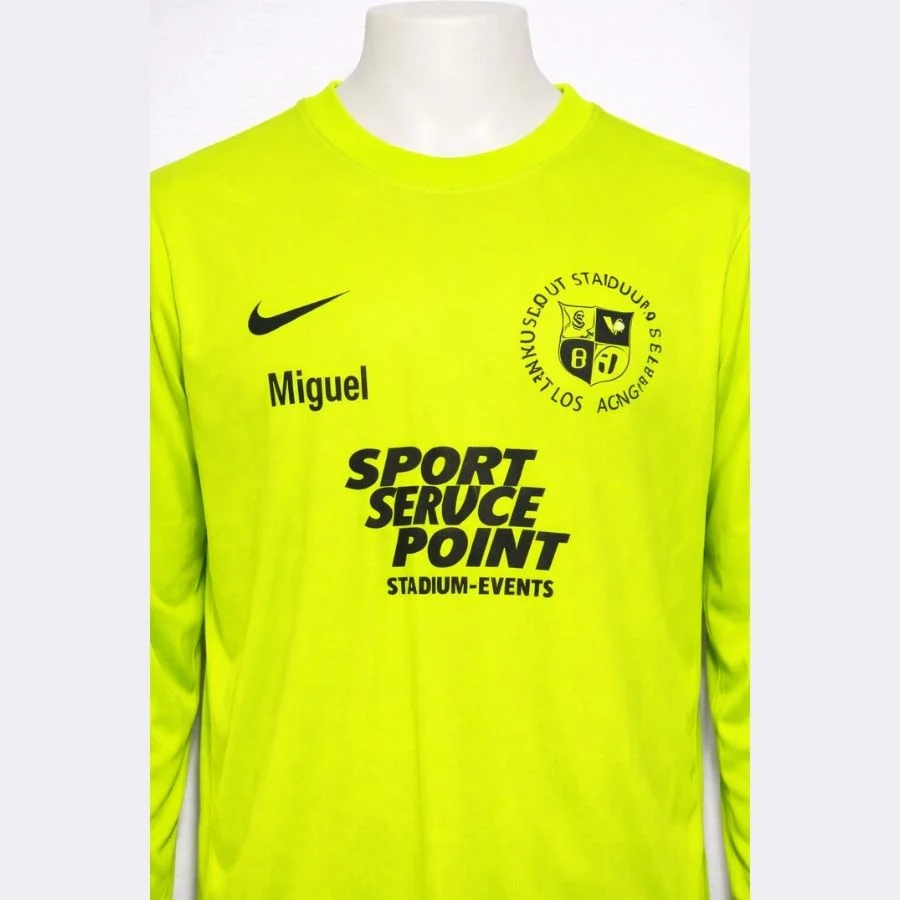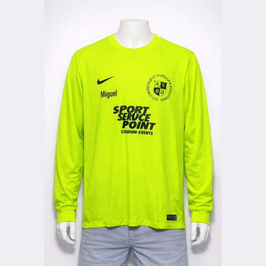 NIKE Men’s Long Sleeve Sport Top is bright green and looks sporty. It feels light and keeps you cool. It has a NIKE logo on the chest. It has long sleeves for outdoor use. It is easy to move in. It is original and used but clean.