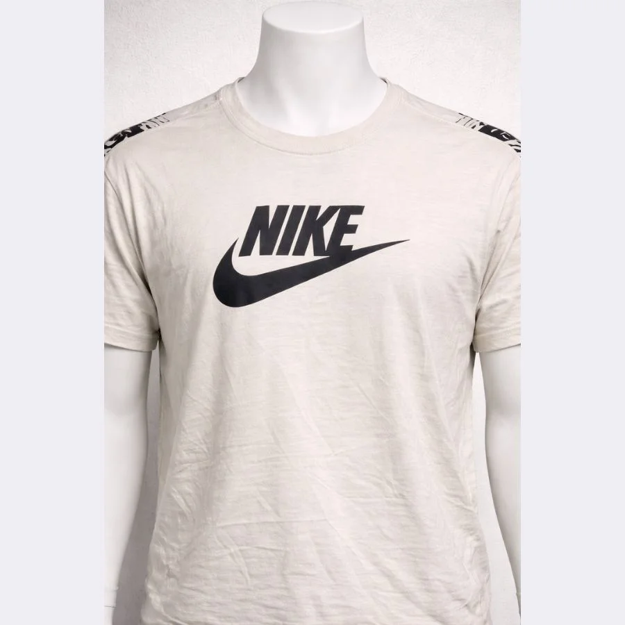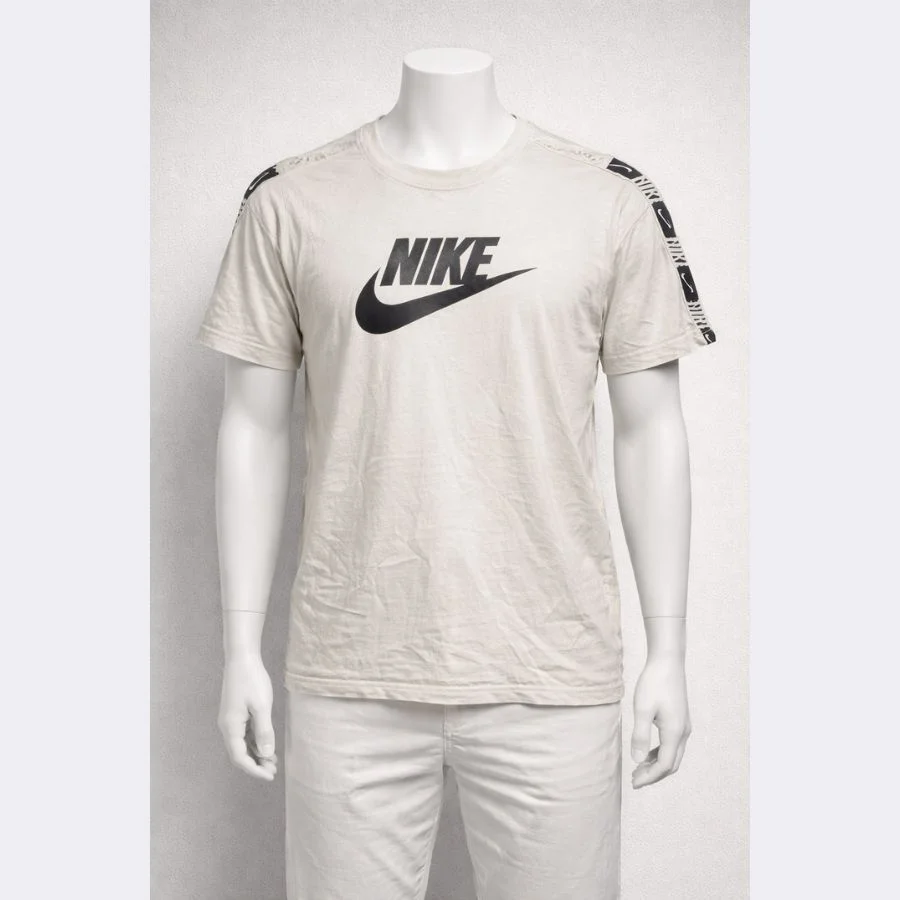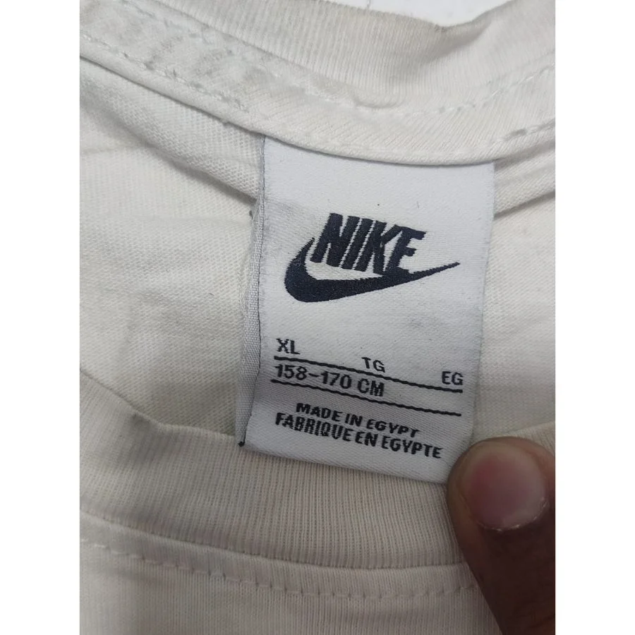 This is a Nike men’s t-shirt in XL size. It comes in a white color. The Nike logo is printed on the front. There is also a design detail on the shoulders. The fabric feels soft and light on the skin. It is a good option for casual wear and daily use.