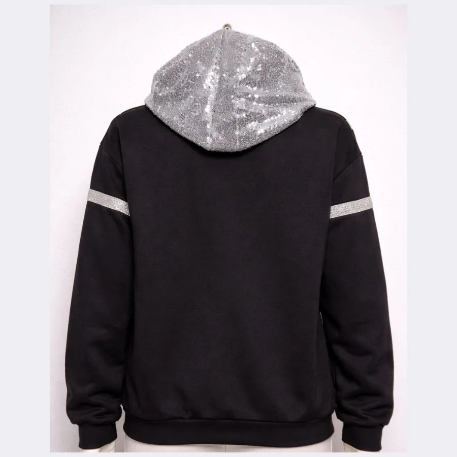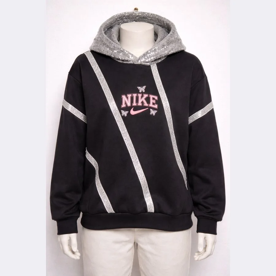 This is a Nike women’s pullover hoodie in XL size. It comes in black color. It has silver details which add a stylish look. The fabric feels soft and comfortable. It is good for daily wear and casual days.
