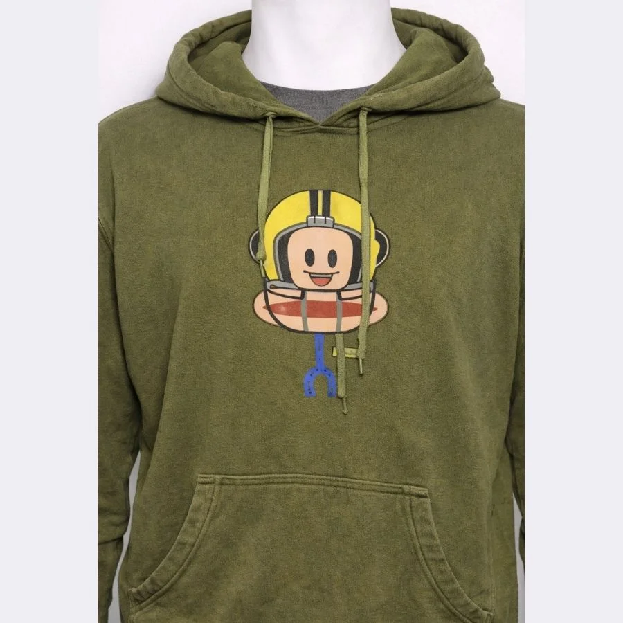 This PAUL FRANK Men’s Hoodie is an olive green hoodie with a cool street style. It feels soft inside and is comfy to wear. It has a big front pocket for small things. It has a hood and pullover style for easy wear. It is light and good for weekends or casual days. It is original and used but clean. It looks nice with jeans or joggers.
