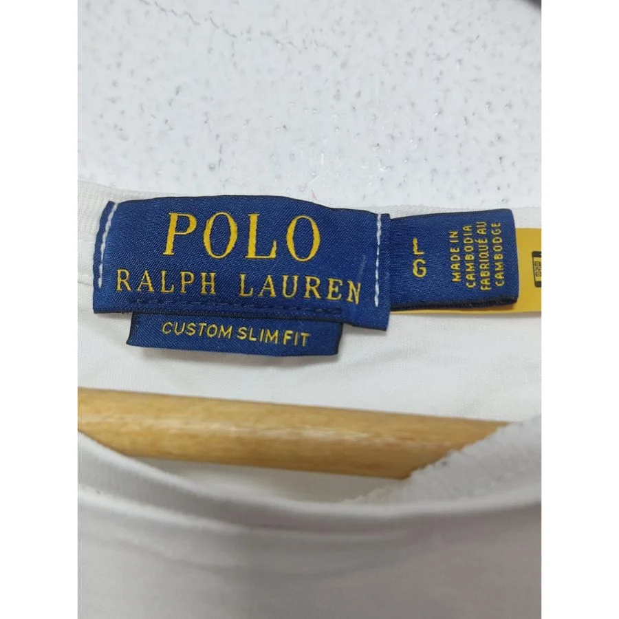 This is a Polo Ralph Lauren men’s t-shirt in large size. It comes in a white color. The small pony logo is on the chest. It has a classic crew neck design. The fabric feels light and soft. It is suitable for casual wear and everyday use.