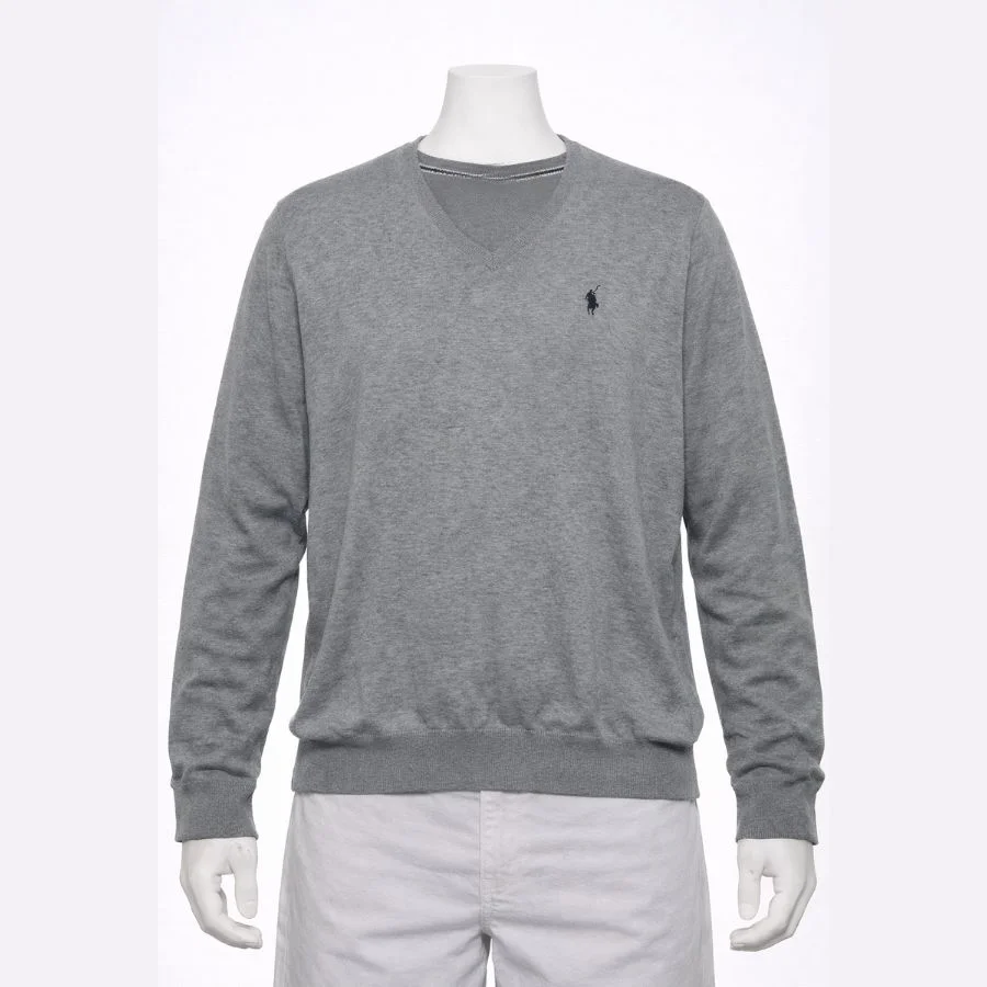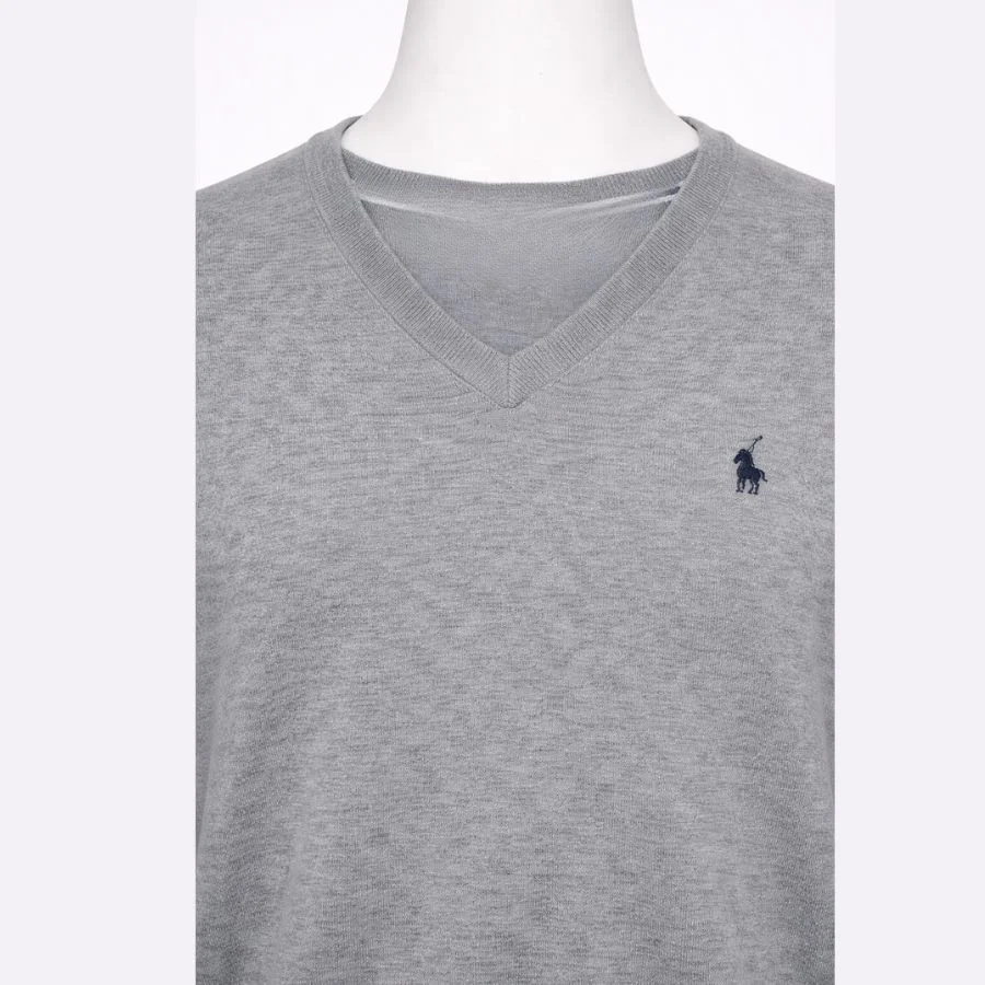 This Polo Sport V-neck sweater comes in a classic grey color with a clean and timeless design. It features long sleeves, a comfortable knit fabric, and subtle Polo Sport logo embroidery on the chest. Easy to style for casual or smart-casual outfits, it is suitable for daily wear or layering. A versatile second-life sweater combining comfort, simplicity, and classic Polo Sport style.