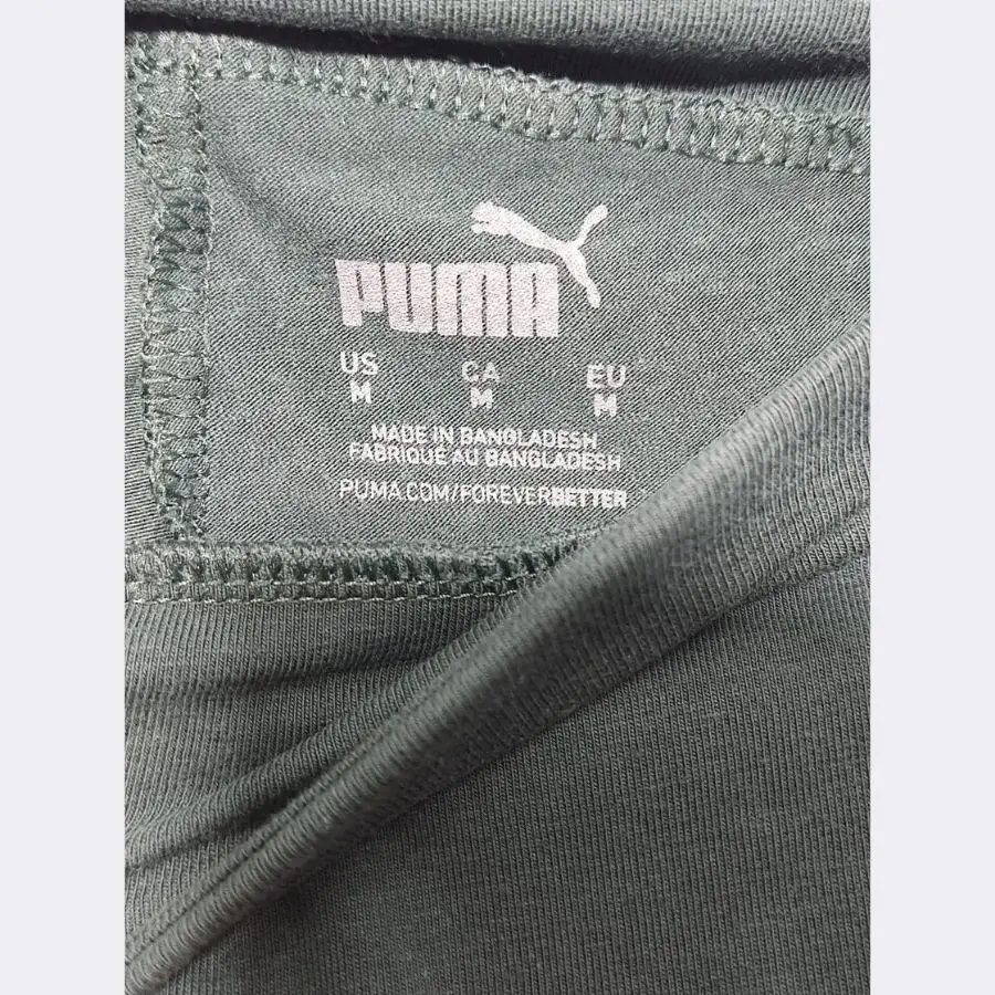 This is PUMA women’s graphic leggings. It comes in a dark green color. The PUMA logo runs down one leg. The fabric is stretchy and comfortable. Good choice for workouts and everyday wear.