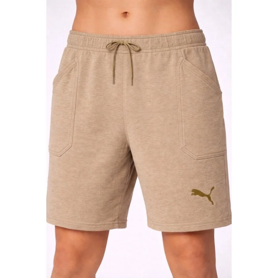 This Puma sportswear shorts comes in a soft beige color with a clean and simple look. It has an elastic waist with a drawstring, so it is easy to adjust. It feels soft and comfortable for daily use. It is perfect for gym, walking, or relaxing at home.It has side pockets to keep small items easily.