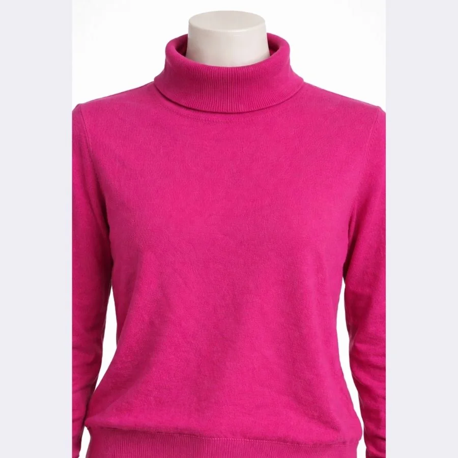 This is a TOMMY HILFIGER women’s sweater in a large size. It comes in a bright pink color. The turtleneck adds warmth and a neat look. The fit is comfortable and easy to layer. It is best for daily wear and casual outfits.