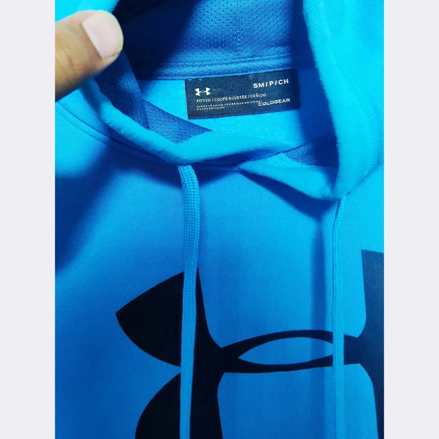 This is a stylish and comfortable Under Armour hoodie. Soft cotton-blend fabric combines comfort with elegance. It feels comfortable all day. Fresh looking in this blue colour, the front logo gives it a sporty look. A front pocket and an adjustable hood provide extra comfort. Wear to the gym, outside or at home.