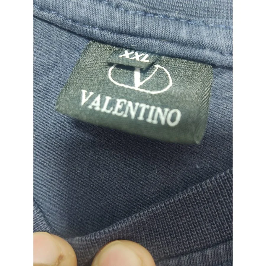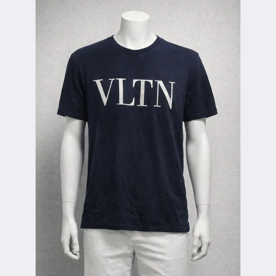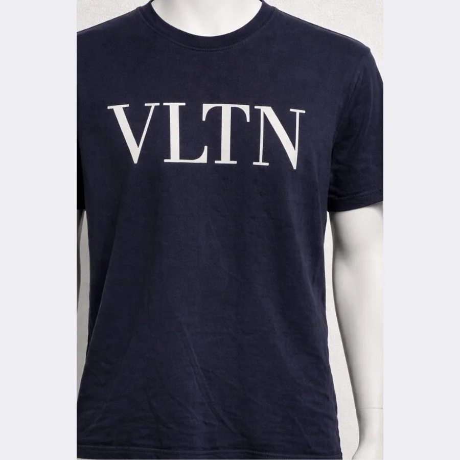 This is a Valentino men’s t-shirt in XXL size. It comes in a navy blue color. The front features a large VLTN logo print. It has a classic crew neck design. The fabric feels soft and comfortable. It is a good choice for casual wear and modern style.